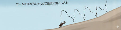 ロッドを3時の位置から2時の位置にゆっくりと持ち上げることで、ワームにアクションを加えます。この時、ワームが底から離れないように注意し、ロッドを通じて底の起伏を感じ取ることがポイントです。 - 横方向に動かすズル引き
