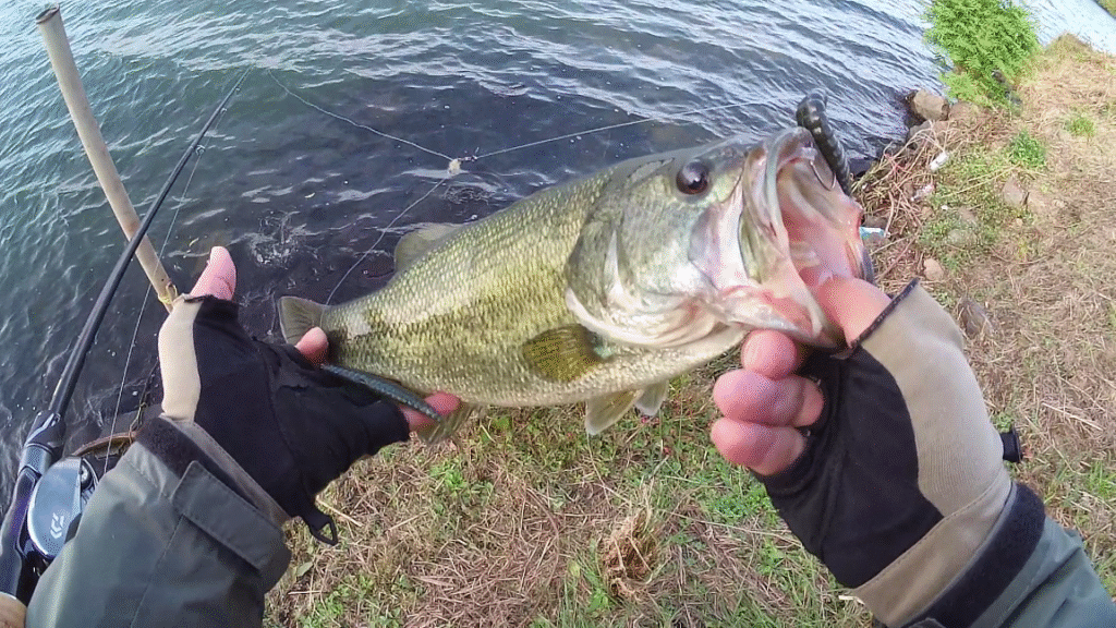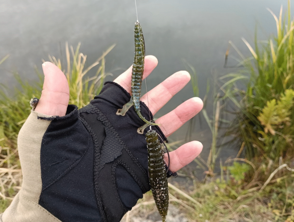 1回目の釣行では残念ながら釣果にはつながりませんでしたが、2回目の挑戦でついにドンキーリグでバスをキャッチすることができました!アクションは「ジャーク&トゥイッチング」で操作するスタイルなので、ロッドを動かすたびにルアーが反応してくれて、操作感があってとても楽しい釣りです。