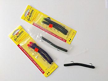 Do-Nothingワームの最大の物理的特徴は、その特異なフック構造です。4〜5インチのシンプルなストレートボディに、パンフィッシュ(小型魚)用の極小フックが2つ露出した状態で装備されています。