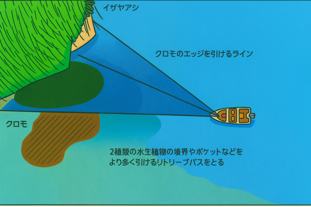 さらに、水生植物の種類の違いによって形成される境界も見逃せません。こうした細かな変化は、ブラックバスが好むエリアであり、釣りの成果に直結する可能性が高いのです。