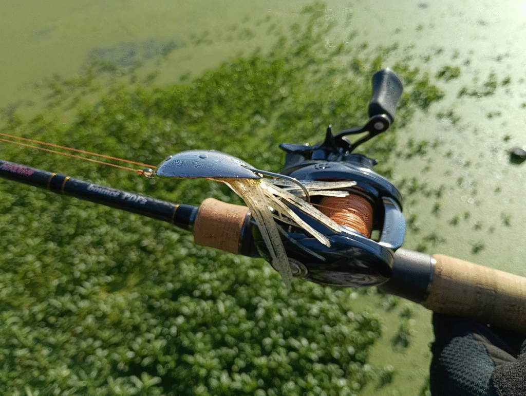 ウィードレススプーンを使うに辺り考えて置きたいタックルセットアップのポイントは、ウィードや水面から顔を出すリリーパッドなどのソフトべジテーションのカバーに対してブラックバスを確実に取り込む事ができるセットアップにする必要があります。