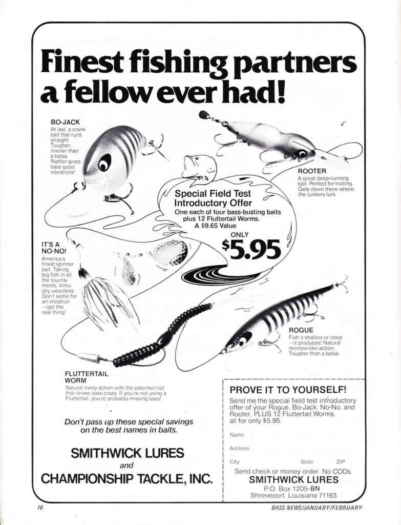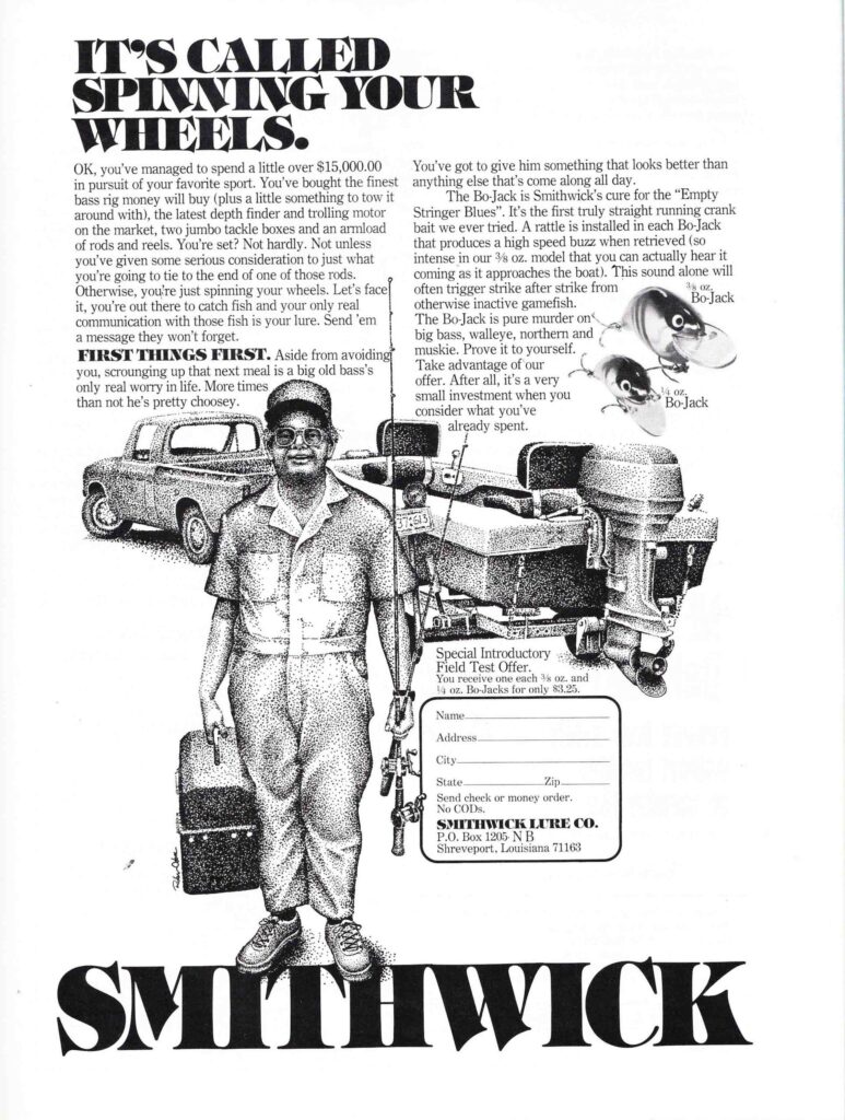 スミスウィック社の「BO-JACK(ボージャック)」というネーミングは、創業者ジャック・K・スミスウィック氏と、2代目社長ジャック・A・スミスウィック氏、両名の「ジャック」にちなんで名付けられたものです。1977年に掲載されたナショナル・バスマン誌の広告には、ボージャックの内部に市場唯一とされる「ブザー音」を発生させるラトルを搭載していることが強調されていました。